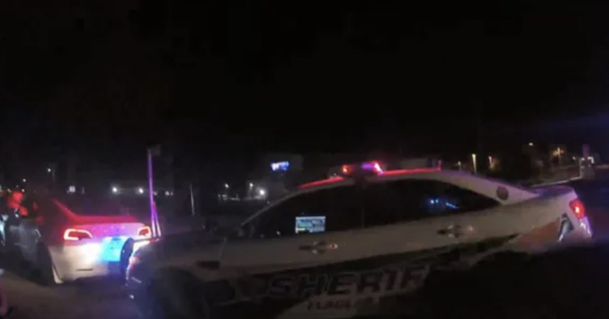 The incident happened near Daytona Beach, Florida, where a Flagler County Sheriff’s deputy pulled over a Tesla Model Y driving on the wrong side of the road.